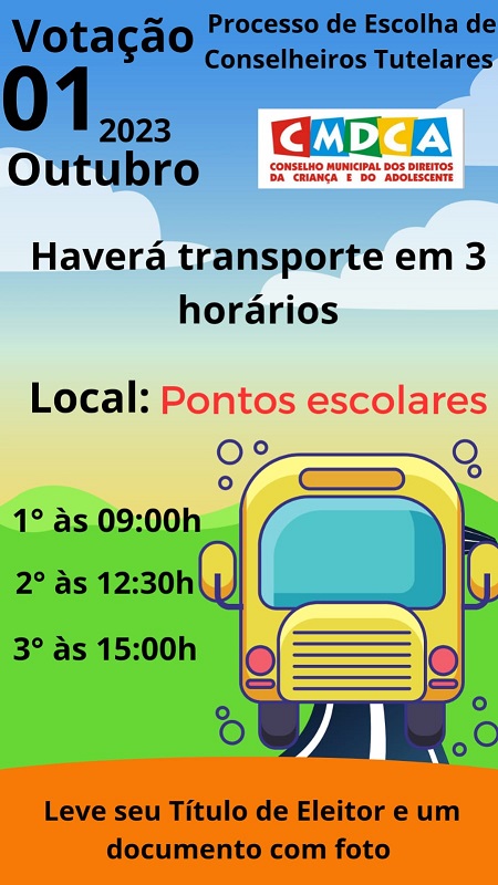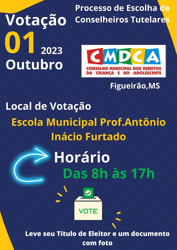 Neste domingo, dia 1º de outubro, Eleição para Conselheiro Tutelar.