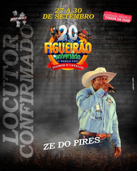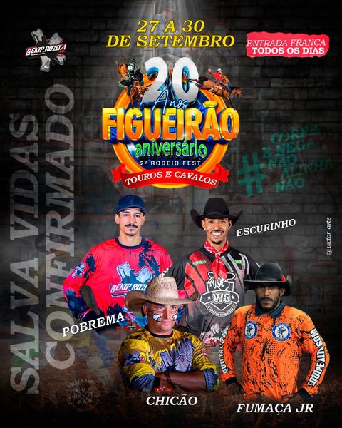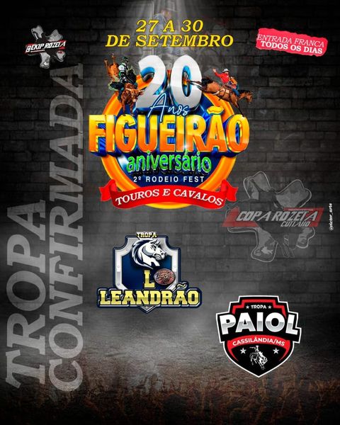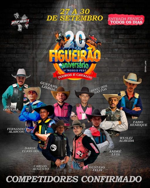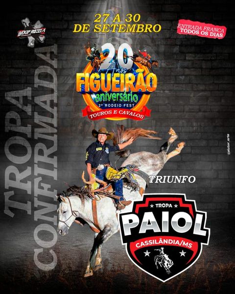 Na noite desta quarta-feira,  27 de setembro, será dada a abertura do 2º Rodeio Fest do Aniversário de Figueirão, que se estenderá pelos próximos 3 dias, 28, 29 e 30/9, data do encerramento.
