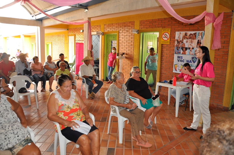 Já a enfermeira Renata Mortari, Coordenadora de Saúde da Mulher, falou do câncer de mama, abordando a importância do exame de autoconhecimento (autoexame) em busca de nódulos e da realização da mamografia de rastreamento, para mulheres de 50 a 69 anos, e também falou do HPV, informando que a vacina já está à disposição na UBS, para meninos e meninas de 09 a 14 anos.